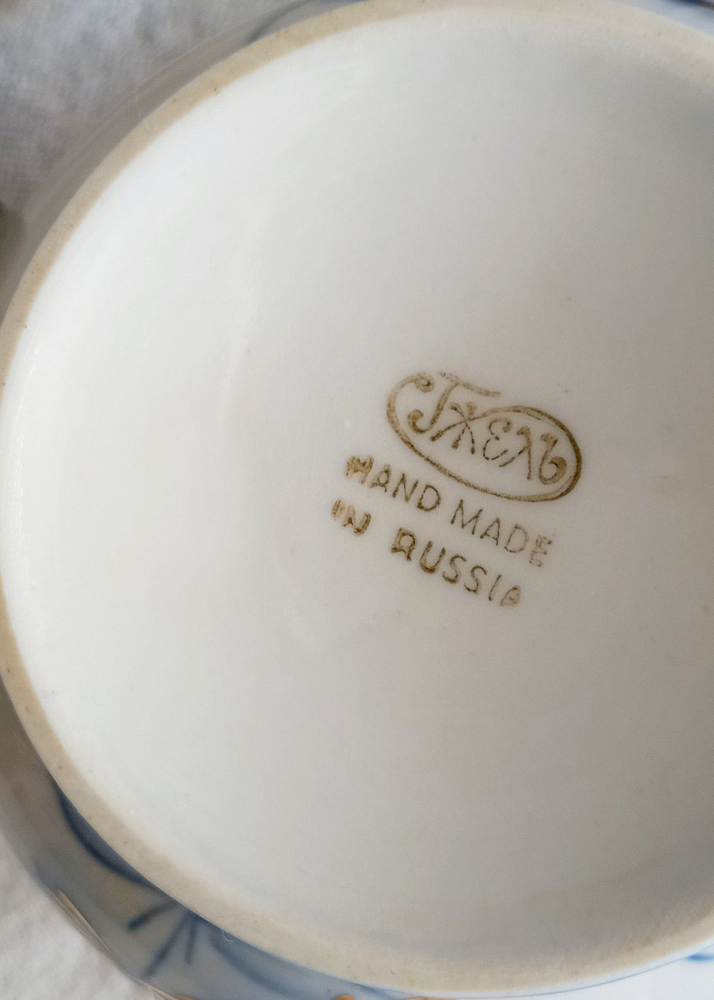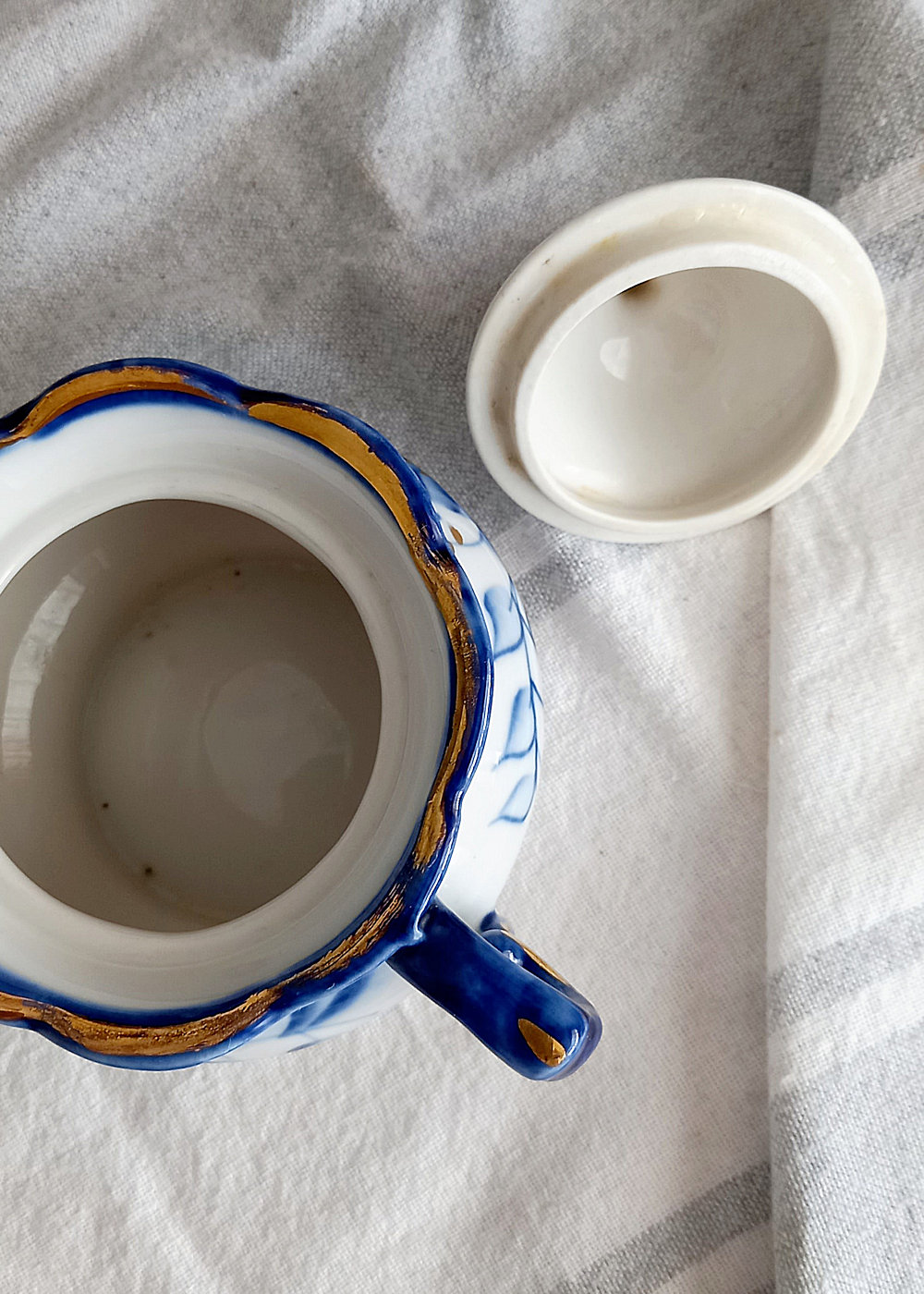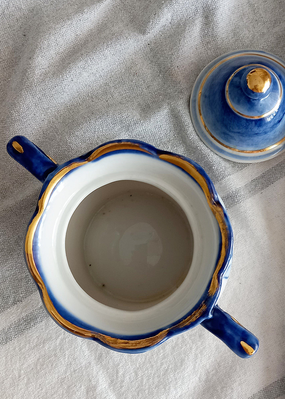Vintage sugar bowl Gzhel, 1990s, Russia.